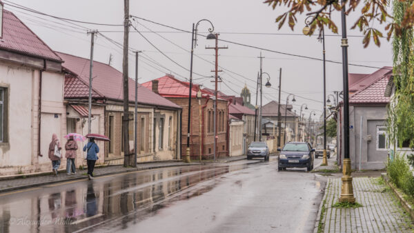 Wir fahren nach Guba und sehen die schöne, rote Juma Moschee. Allerdings ist sie geschlossen. Draußen ist es nass und kalt, daher sitzen wir gleich wieder im Auto. Wir fahren über den Fluss zum jüdischen Viertel, dass sehr chique aussieht. Aber auch hier ist nicht viel zu tun und es ist ekelhaft nass-kalt.