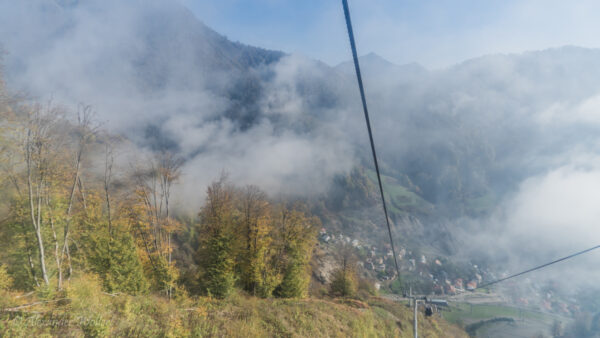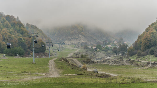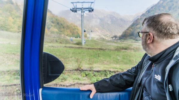 Erstmal ist die Aussicht nicht vielversprechend. Wir fahren durch Quabala in die Berge hinein und finden bei einem Hotel die Talstation. Es ist bedeckt, aber wir sind trotzdem enthusiastisch.