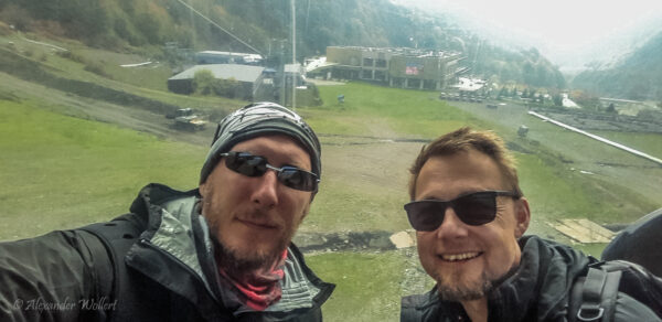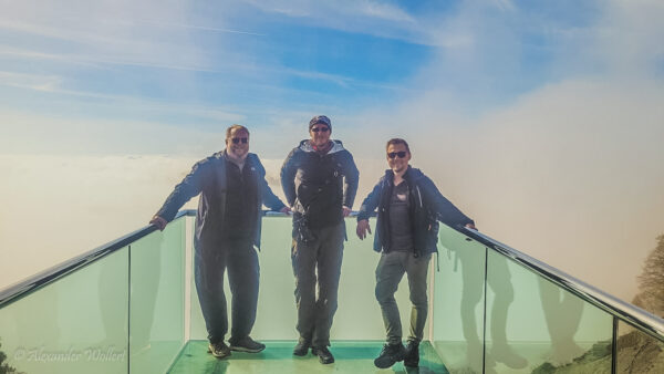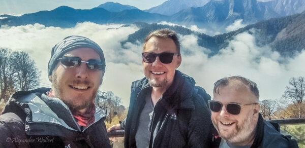 Für uns ist es das Signal zum Aufbruch. Für das letzte Bild auf einer Plattform müssen wir nun richtig lange Anstehen. Wandern können wir auch nicht. Wir nehmen die Bahn nach unten, zurück in den Nebel, und suchen wieder die Einsamkeit auf einer abenteuerlichen Piste durch die Berge!