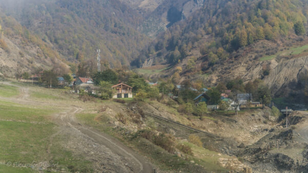 Es ist schon spät, als wir vom schönen Vorzeigedorf Gach (Qax) aus den Weg zurück antreten. Wir sind sehr weit im Westen. Von hier aus gibt es keine Möglichkeit über das Gebirge hinweg in den Nordosten Aserbaidschans zu gelangen. Das Gebirge ist zu hoch.