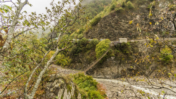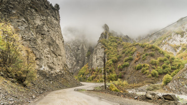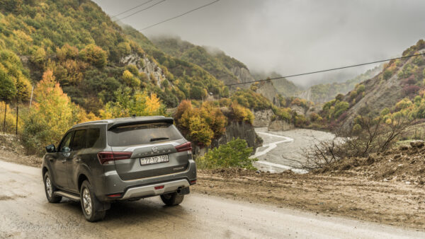 Just a few bends past Lahich, the road becomes wild. Steep slopes separate the road from the mountains, while on the other side it drops off sharply.
