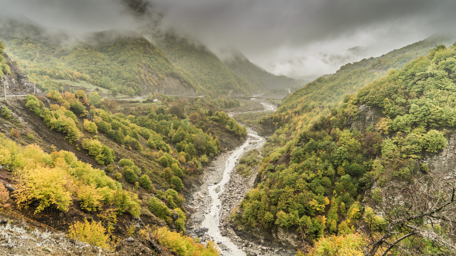 The colors of the trees are beautiful. How magnificent it must look here when the sun shines! I got a glimpse of that on my trip to the Caucasus in 2017.