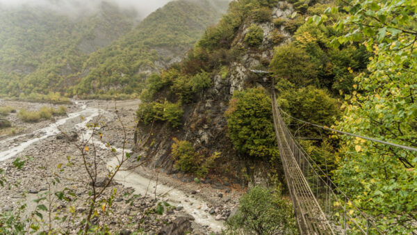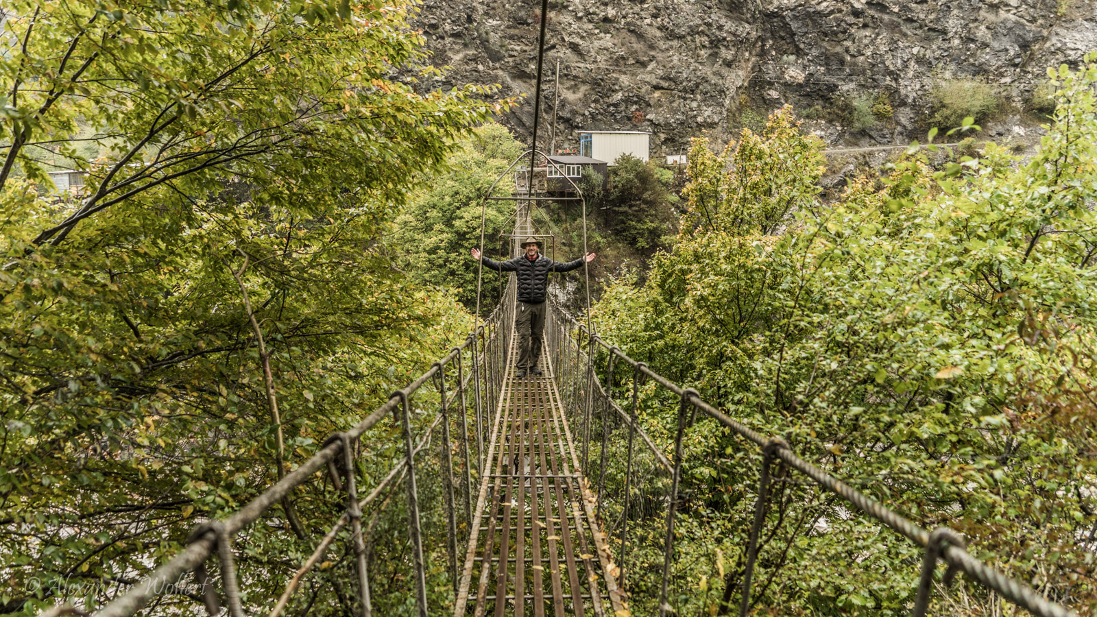 Finally, we reach a suspension bridge, which is also lined with souvenir shops. However, almost all of them are closed.