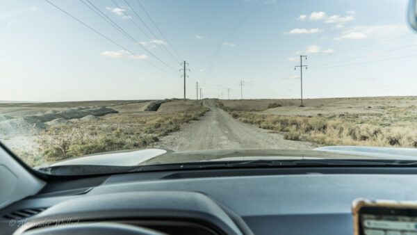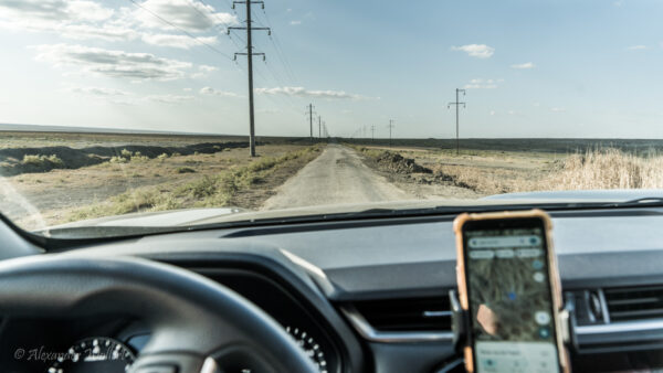 We’re in Qobustan, admiring mud volcanoes and ancient petroglyphs. My original plan was to continue driving freely through the wilderness into the mountains from here and reach the main road on the other side tomorrow. Where Google Maps fails, satellite images help to see where the roads run. There are still a few volcanoes along the way. But unfortunately, a modern, but closed, road has been added along with the concrete construction. When I inquired, I was told I couldn’t continue driving here.
