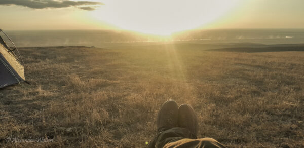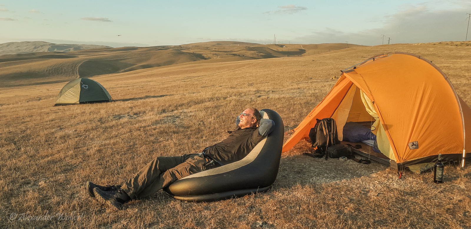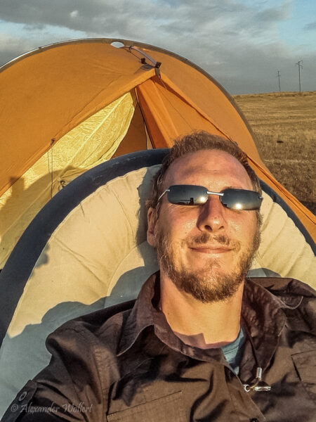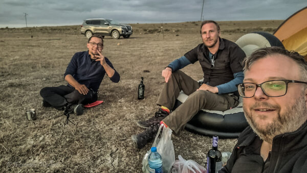 It’s late afternoon and I’m convincing the boys to camp here. Uwe and Chris aren’t very familiar with wild camping and are skeptical. “Where are we supposed to camp?” – “Doesn’t matter! This is a huge campsite!”