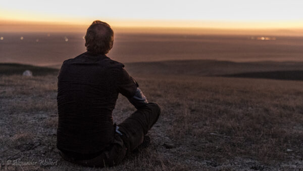 The location on the hillside near the road, with a wide view of the countryside at sunset and absolute solitude, removes any doubt.