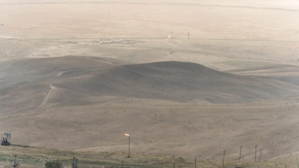 On one side the land is incredibly flat, on the other rise the soft foothills of the Caucasus.