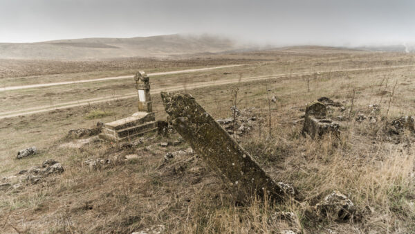On the way, we stop at a dilapidated cemetery where there are apparently Christian gravestones standing and lying.