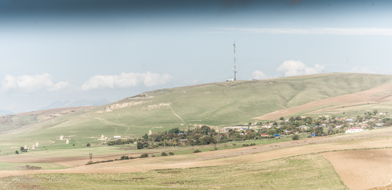 We pass through more villages and see farmland all around us. The route on the map suddenly leads us off a dirt track and across the fields, but the farmers don’t seem to mind. I’ve spotted a place on the map where we can see small towers that served as mausoleums. It’s called KΙlΙxana abidΙlΙri: the tombs of Kelekhana.